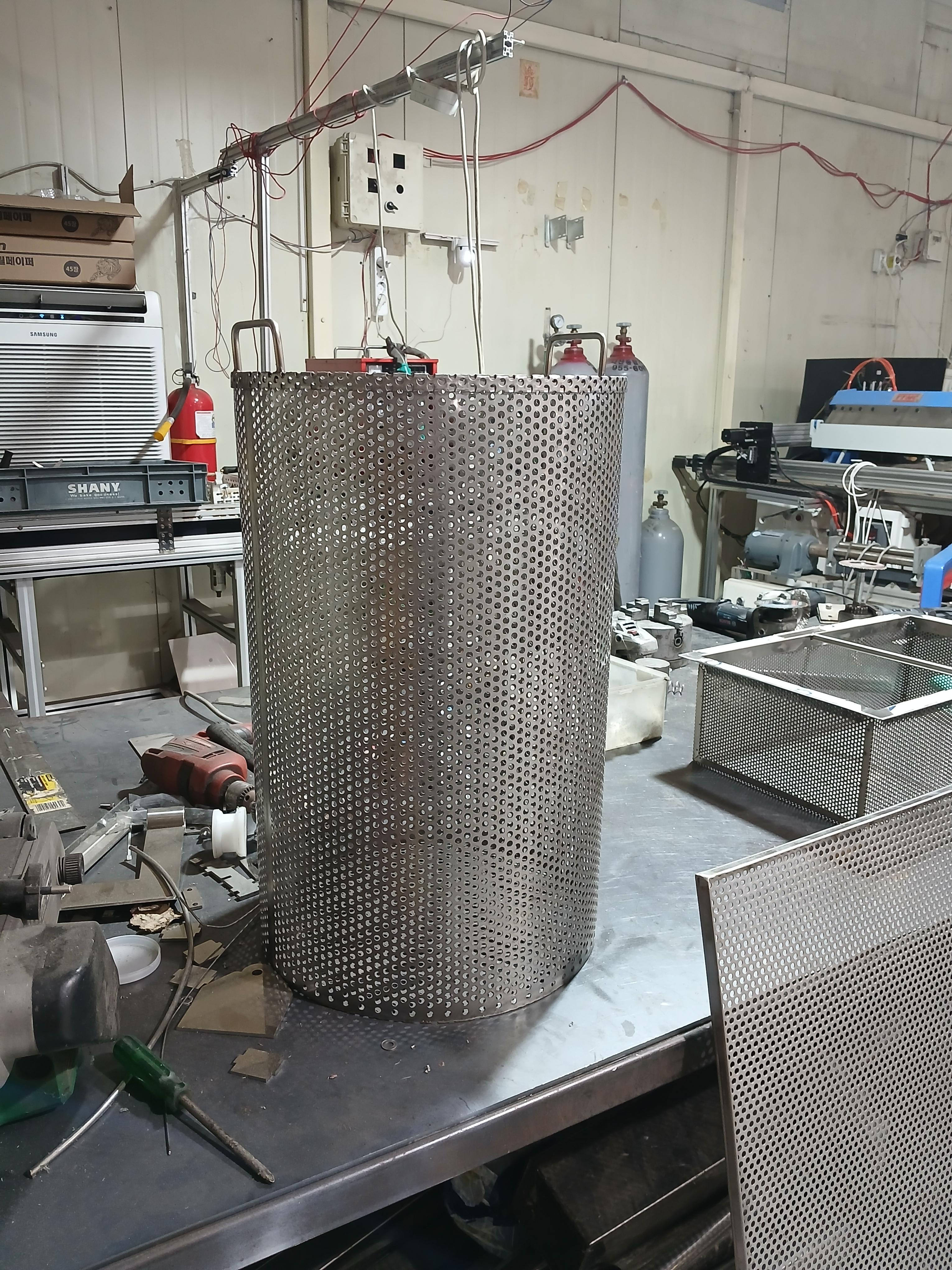 돼지 껍데기 삶을 용도로 사용할 스텐 타공 육수망 제작