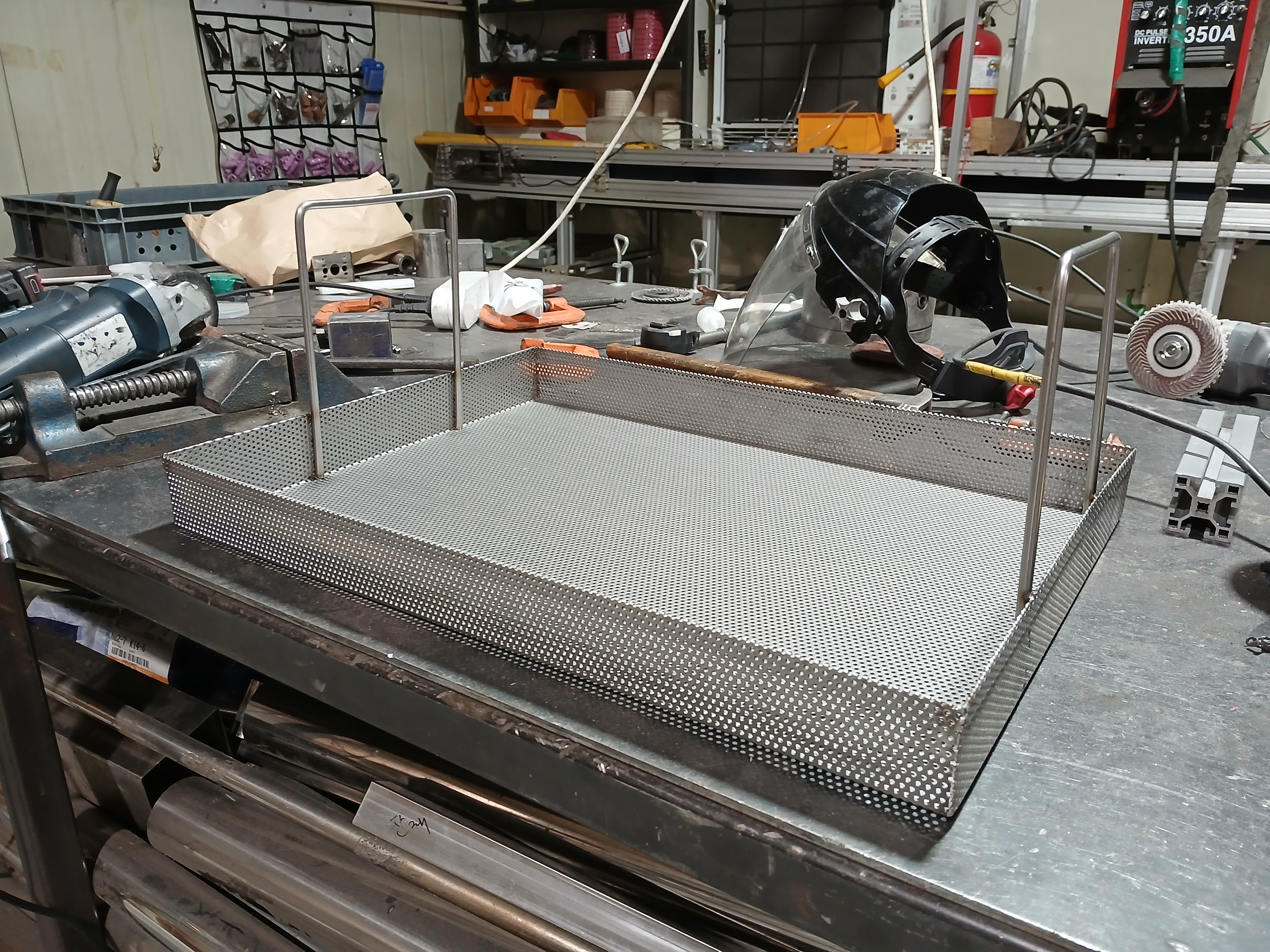 치킨 튀김기 안에 튀김 가루 거르는 용도로 사용할 스텐 사각 타공 바구니 형식 제작 ( BBQ )