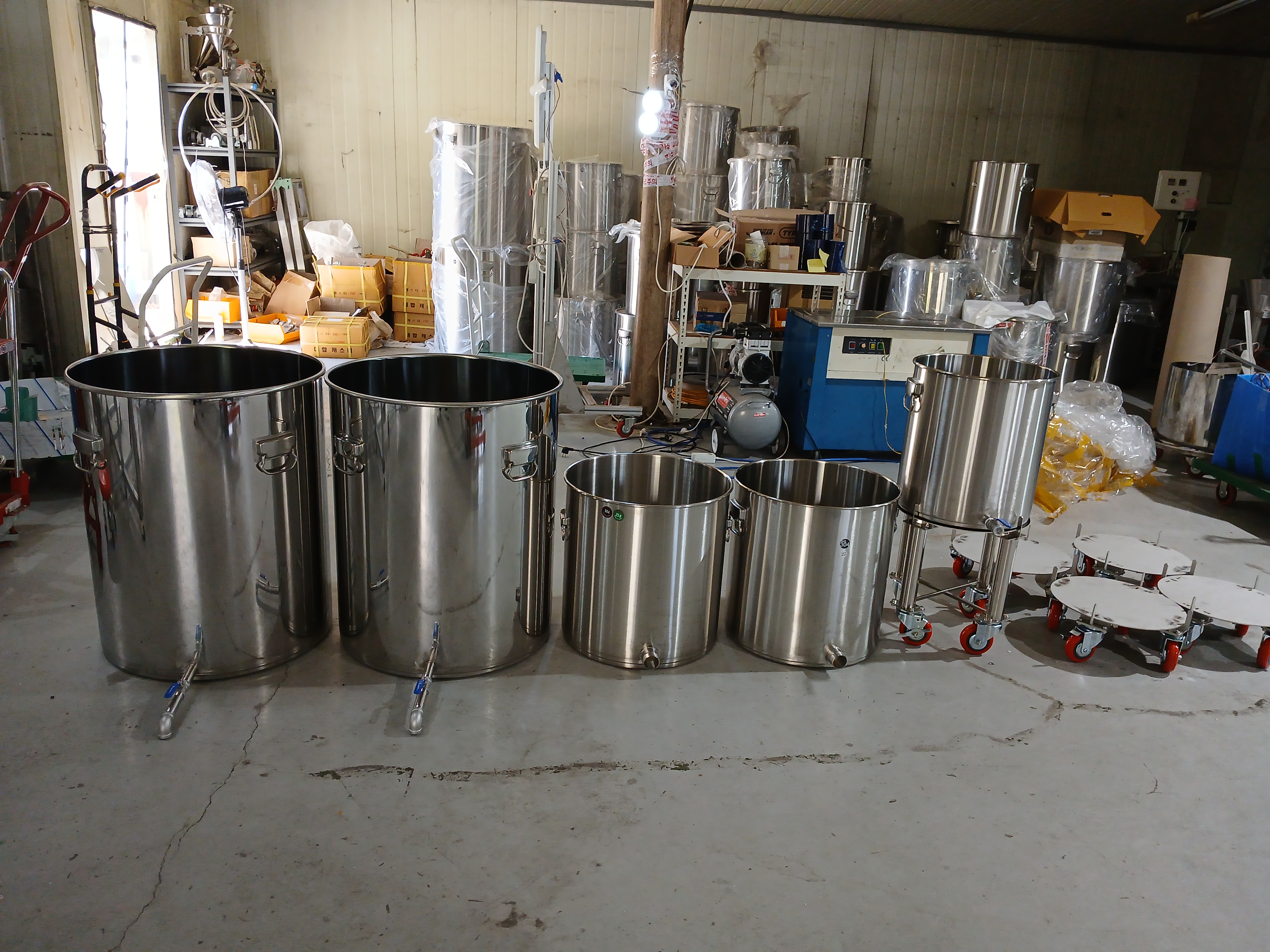 * 밸브 장착, 세니타리 장착, 홀 타공, 밀폐 ( 매미고리+패킹 ), 용기 이동에 편리한 이동식 발통틀 ( 높이 변경 가능 , 기본 우레탄 바퀴 적용 , 그외 바퀴 장착 가능 ) 등
